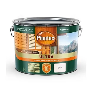 Пропитка декоративная для защиты древесины Pinotex Ultra AWB полуглянцевая белая 9 л