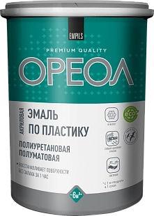 Эмаль по пластику полиуретановая акриловая Ореол полуматовая белая 1,1 кг