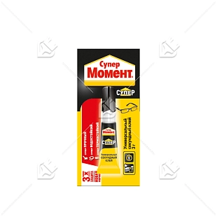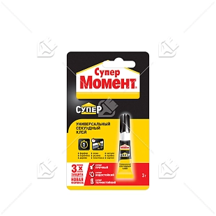 Клей универсальный секундный Супер Момент 3 г. блистер в шоу-боксе