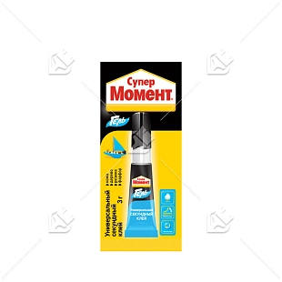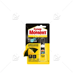 Клей универсальный Супер Момент Водостойкий 3 г. на единичном блистере в шоу-боксе