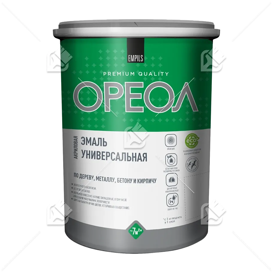 Эмаль универсальная акриловая Ореол глянцевая белая 1 кг.