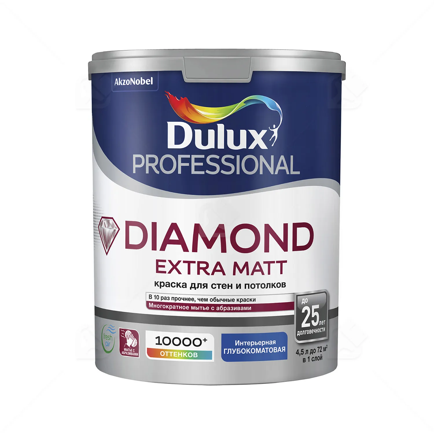 Краска для стен и потолков водно-дисперсионная Dulux Diamond Extra Matt глубокоматовая база BW 5л / 4,5лБаза