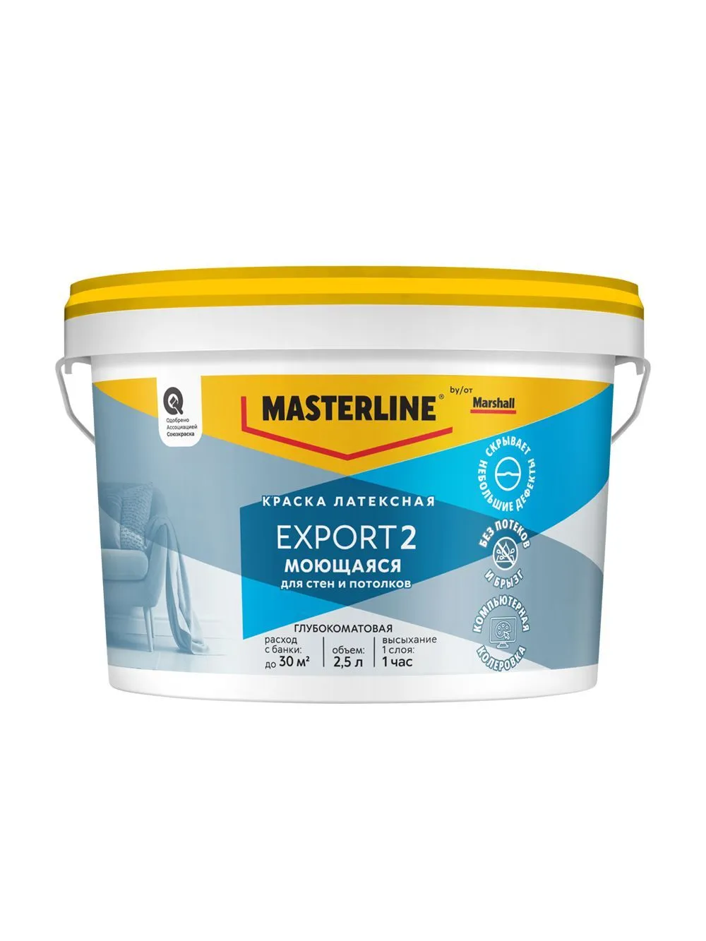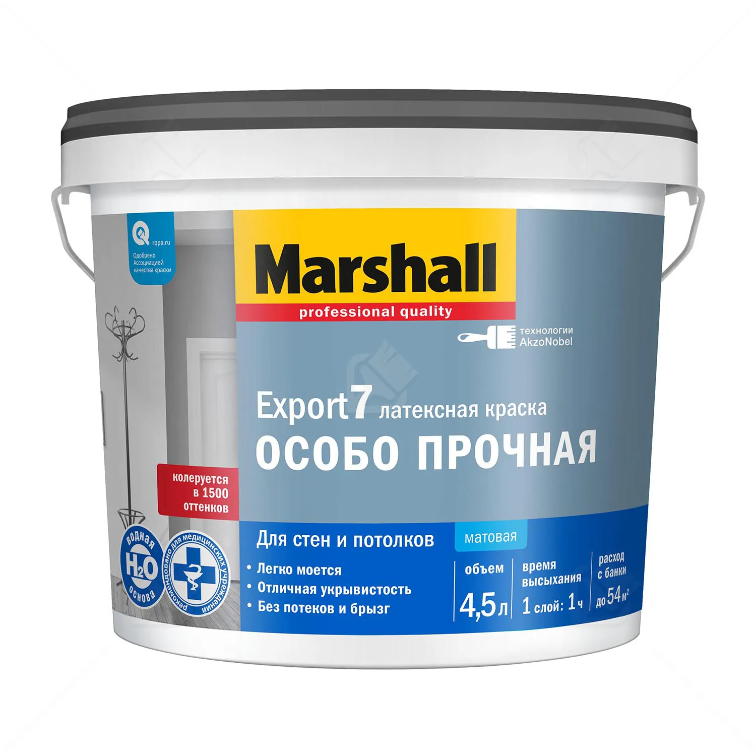 Краска для стен и потолков латексная Marshall Export-2 глубокоматовая база BW 2,5 л.База