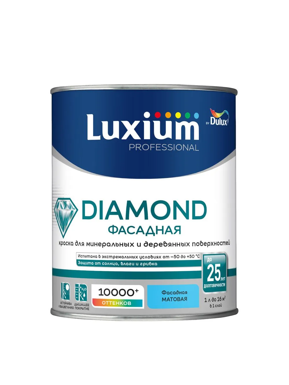 Краска фасадная для минеральных и деревянных поверхностей Luxium Professional Diamond гладкая матовая база BW 1 лБаза