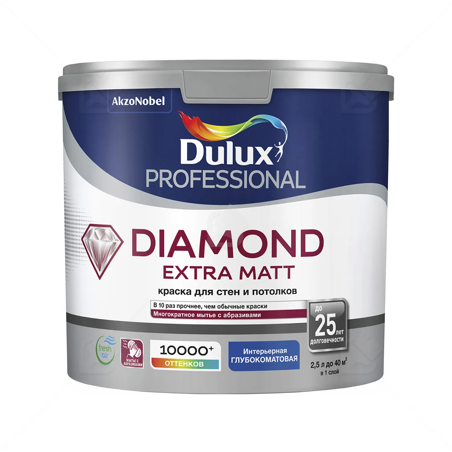 Краска для стен и потолков водно-дисперсионная Dulux Diamond Extra Matt глубокоматовая база BW 2,5 л.База