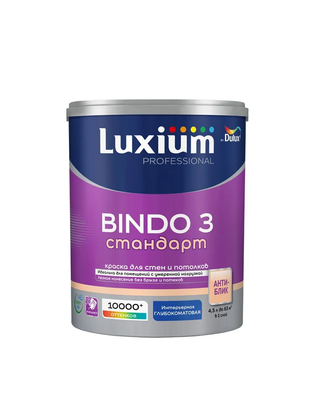 Краска для стен и потолков латексная специальная Dulux Professional Bindo 40 полуглянцевая база BW 9 л.База
