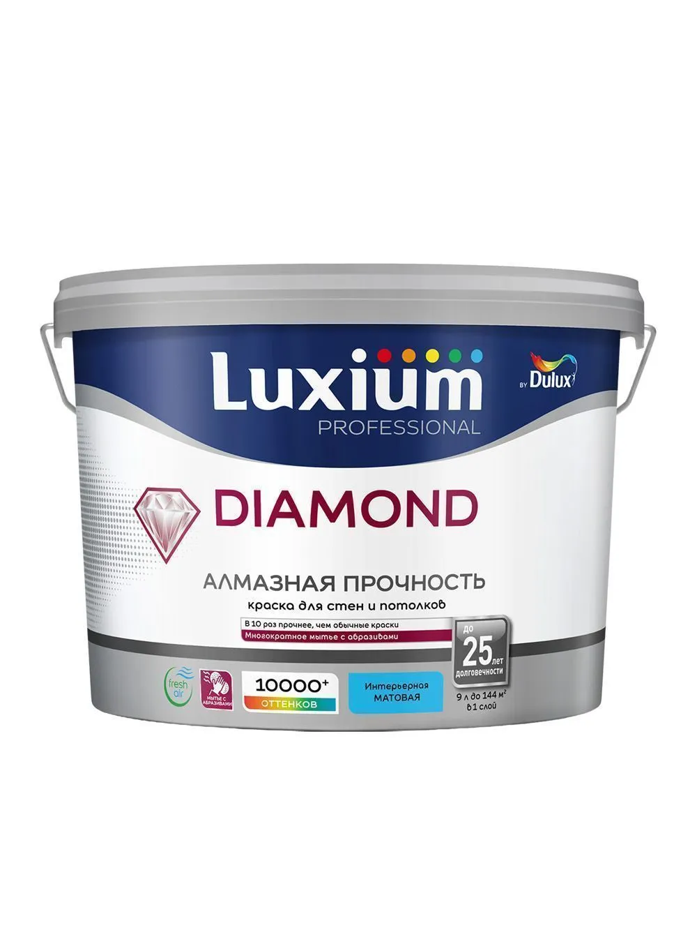 Краска фасадная для минеральных и деревянных поверхностей Luxium Professional Diamond гладкая матовая база BW 9 лБаза