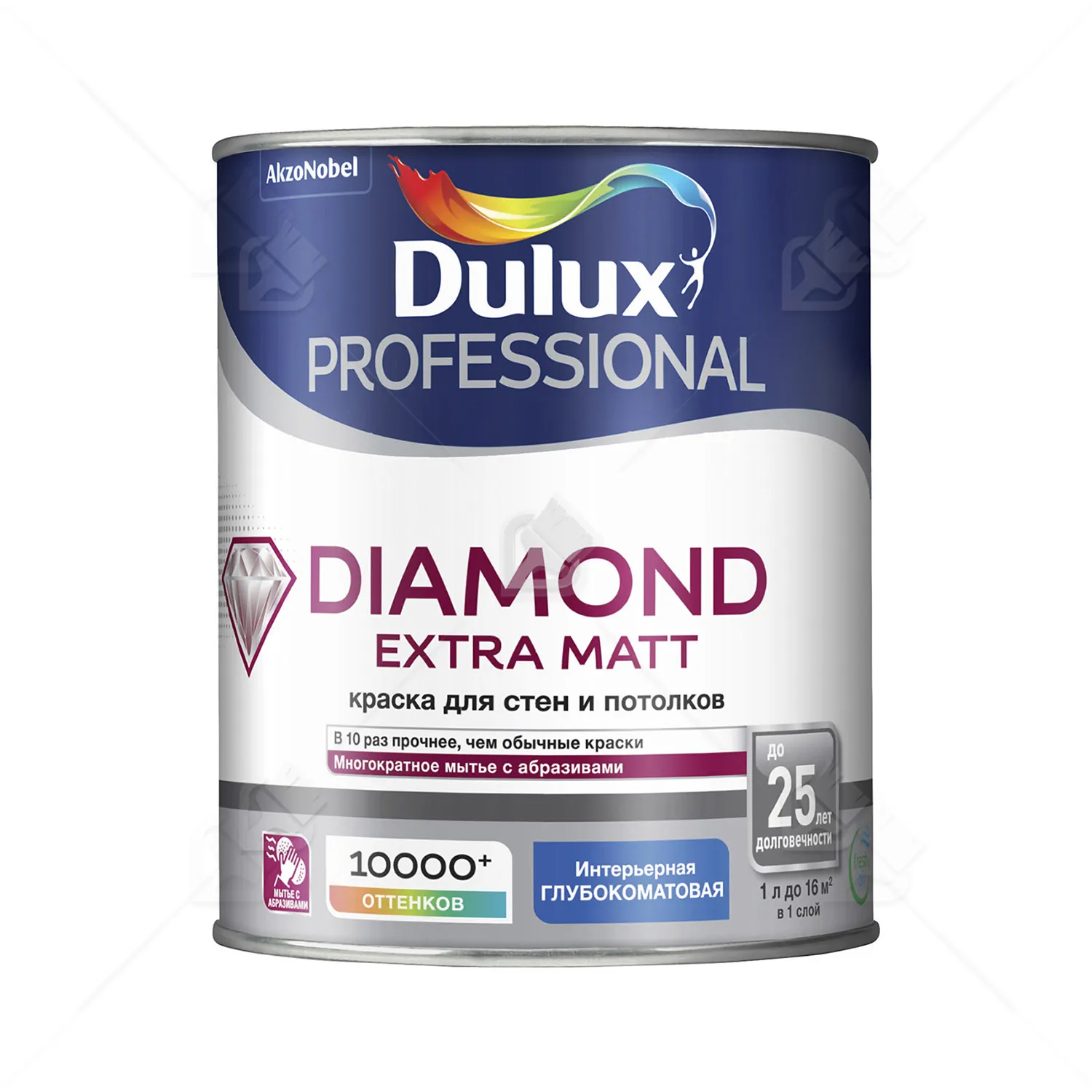 Краска для стен и потолков водно-дисперсионная Dulux Diamond Extra Matt глубокоматовая база BW 1 л.База
