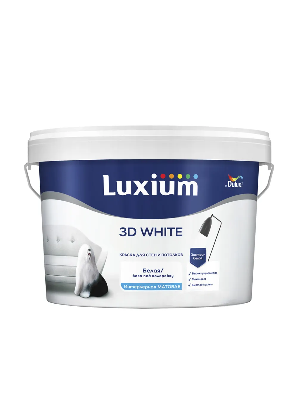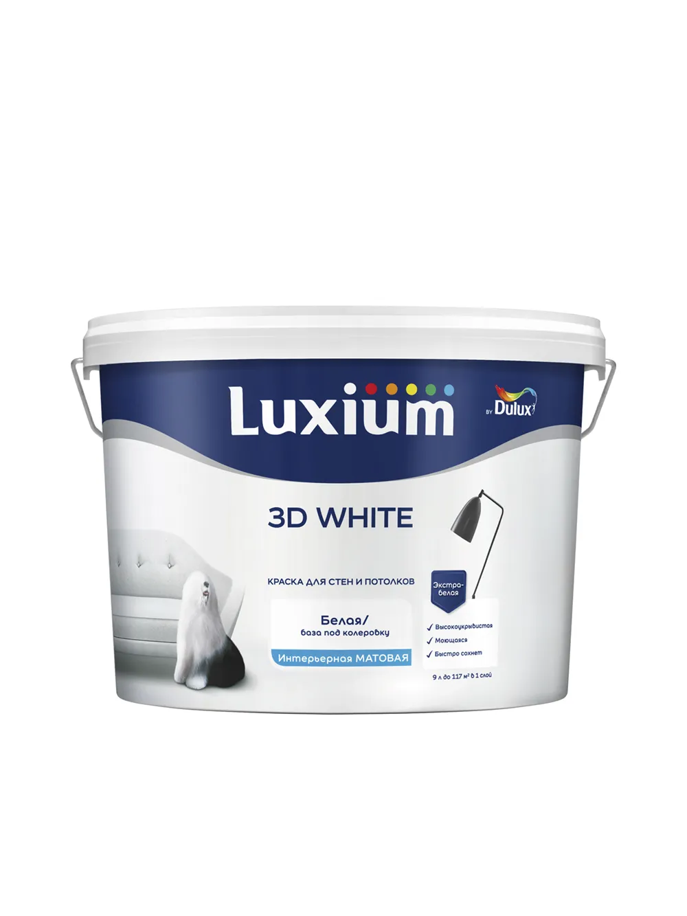 Краска для стен и потолков водно-дисперсионная Luxium 3D White матовая 9 лБаза
