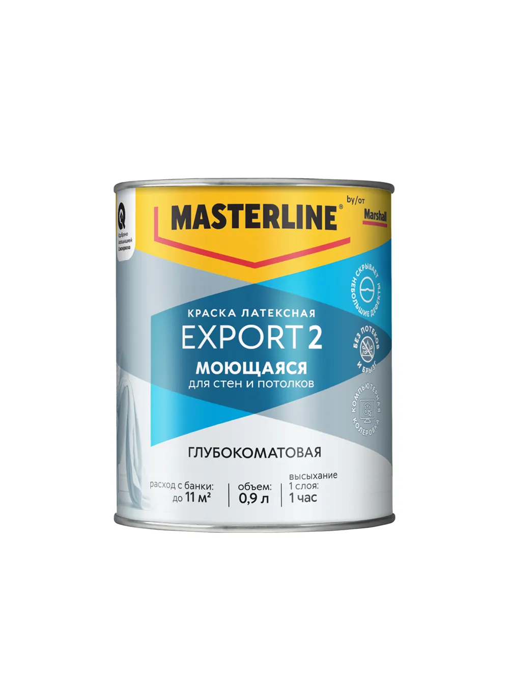 Краска для стен и потолков латексная Marshall Export-2 глубокоматовая база BW 0,9 л.База