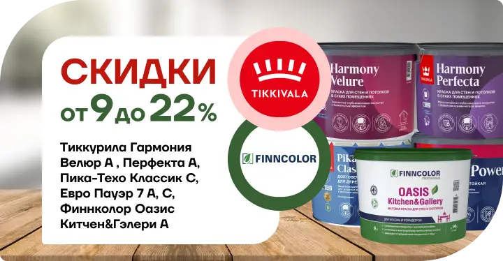 Обновите интерьер с выгодой! Скидки от 9 до 22% на краски Tikkurila и Finncolor: